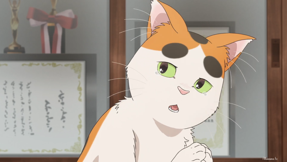 Instead, we see the family overjoyed that their elderly cat will not only keep living, but able to talk to them, interact with them, and therefore become even more of a member of the family than before. Buchio's eyes swell with tears of gratitude, and he begins his new life.